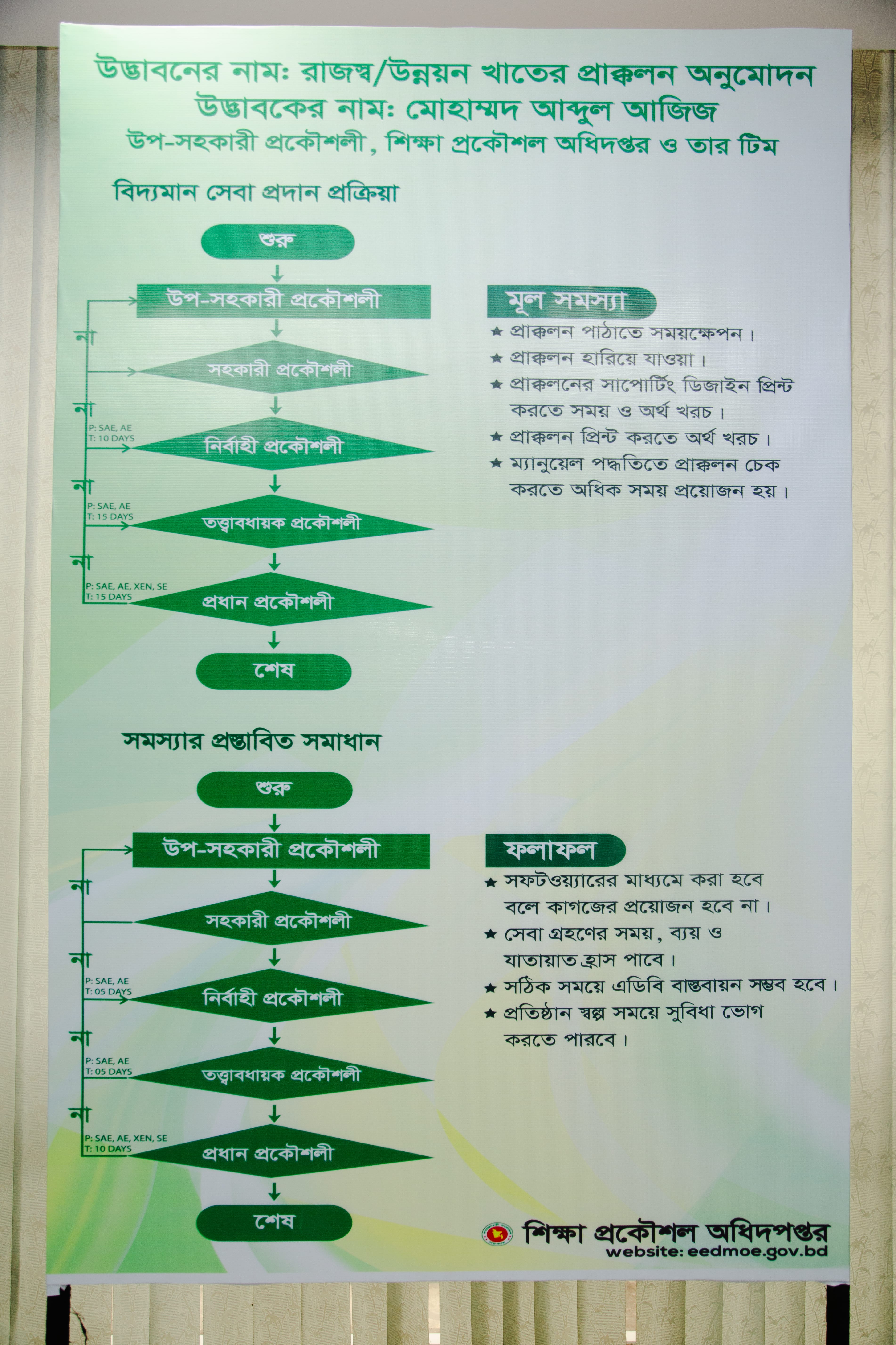 ৮ মে ২০২৪ তারিখ বুধবার আন্তর্জাতিক মাতৃভাষা ইনস্টিটিউট-এ ইইডি কর্তৃক আয়োজিত দিনব্যাপী ইনোভেশন শোকেসিং-এর উদ্বোধনী অনুষ্ঠানে প্রধান অতিথি হিসেবে থাকেন মাধ্যমিক ও উচ্চ শিক্ষা বিভাগ, শিক্ষা মন্ত্রনালয়ের সম্মানীয় সচিব, জনাব সোলেমান খান মহোদয়। বিকেলে সমাপনী অনুষ্ঠানে প্রধান প্রকৌশলী জনাব মো. দেলোয়ার হোসেন মজুমদার মহোদয় বিজয়ীদের মধ্যে ক্রেষ্ট বিতরণ করেন। শোকেসিং এ ইইডি’র প্রধান কার্যালয় ও মাঠ পর্যায় থেকে আইডিয়াসমূহ প্রদর্শণ করা হয়।